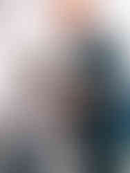Jade Wiles’ Between Lavender Walls offers another vision of what transformation through the shadow might look like. Set against a soft lavender ground, each portrait carries the viewer through a distinct emotional state—reflection, exhaustion, and joy—suggesting that becoming is not a singular breakthrough but a series of inner conditions. In Reflection, the figure’s distant gaze and celestial garment create a sense of introspection and emotional restraint. In Exhaustion, Wiles renders fatigue not as spectacle, but as quiet endurance. Framed by a lavender headband and a vast halo of hair, the figure’s heavy-lidded gaze and subdued expression suggest the emotional wear of carrying on when rest has not yet fully arrived. And finally, in Joy, a figure’s eyes are pressed closed while a loving cat perches on his shoulders and nuzzles his head, suggesting that tenderness, rest, and connection are also part of transformation. Together, the works imagine the self not as fixed, but as something passing through shadow toward a more grounded and intimate form of presence.